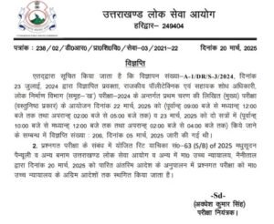 एतद्वारा सूचित किया जाता है कि विज्ञापन संख्या-A-1/DR/S-3/2024, दिनांक 23 जुलाई, 2024 द्वारा विज्ञापित प्रवक्ता, राजकीय पॉलीटेक्निक एवं सहायक शोध...