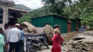 नृसिंहगाचल पर्वत का एक हिस्सा दरका, मकान पर गिरे भारी बोल्डर और मलबा, एक घायल, कई वाहन भी दबे ...