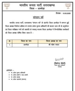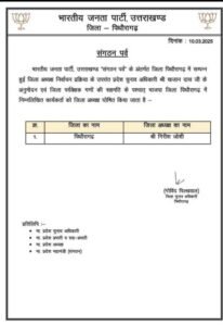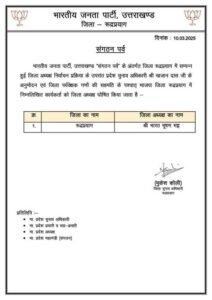हरिद्वार और रानीखेत को छोड़कर सभी जिलों के अध्यक्षों की घोषणा।