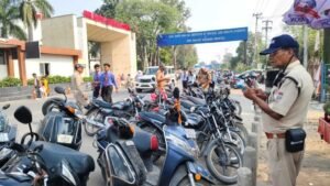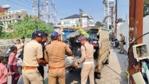 उक्त आदेशों के क्रम में *थाना पटेलनगर के बाजार चौकी क्षेत्रान्तर्गत महंत इंद्रेश अस्पताल रोड ओर दैनिक जागरण वाली गली* से पुलिस टीम द्वारा अव्यवस्थित रूप से नो पार्किंग में अपना वाहन खडा कर यातायात को अवरूद्ध करने तथा यातायात के नियमों का उल्लघनं करने वाले 28 दोपहिया वाहनों तथा 01 कार को मौके से टो कर थाना पटेलनगर पर दाखिल किया गया। जिनके विरूद्ध कार्यवाही की जा रही है। साथ ही मौके पर ही नो पार्किंग में खडी 32 बाइकों का चालान किया गया।