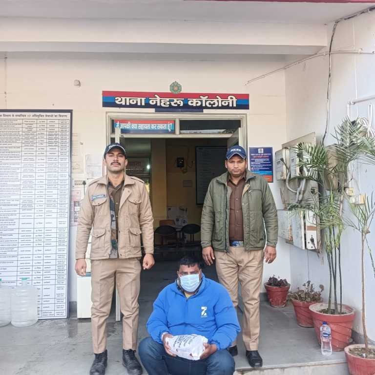 दिनांक 04/01/2025 को नेहरुकोलोनी पुलिस द्वारा दौराने चौकिंग/गश्त मुखबिर की सूचना पर अजबपुर फ्लाईओवर के नीचे से एक सदिंग्ध अभिुयक्त को 1.124 किलो ग्राम अवैध गांजे के साथ गिरफ्तार किया गया। अभियुक्त के विरुद्ध थाना नेहरू कॉलोनी पर मु0अ0स0: 08/25 धारा 8/20 एनडीपीएस एक्ट के अंतर्गत अभियोग पंजीकृत किया गया है।