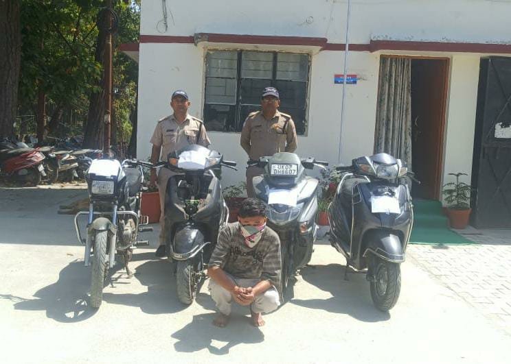 पुलिस टीम द्वारा किये जा रहे लगातार प्रयासों के परिणामस्वरूप पुलिस टीम द्वारा दिनांक 27/03/2025 को हरबंसवाला चेक पोस्ट पर बिना नंबर की मोटरसाइकिल के चालक को चेकिंग हेतु रोका गया, जिससे पूछताछ करने पर चालक द्वारा अपना नाम सुदन थापा पुत्र संत बहादुर थापा निवासी मकान नंबर 159 फेस सेकंड वसंत विहार देहरादून बताया गया। पुलिस टीम द्वारा बिना नंबर की मोटरसाइकिल के संबंध में सख्ती से पूछताछ करने पर वाहन चालक द्वारा उक्त मोटरसाइकिल को दिनांक 06 मार्च 25 को शास्त्रीनगर खाला से चोरी करना तथा मोहित नगर, बल्लीवाला चौक व डालनवाला क्षेत्र से भी वाहन चोरी की घटनाओ को अंजाम देना स्वीकार किया गया, जिसकी निशानदेही पर पुलिस टीम द्वारा चाय बागान खंडहर के अंदर से चोरी की 03 स्कूटी बरामद की गयी।