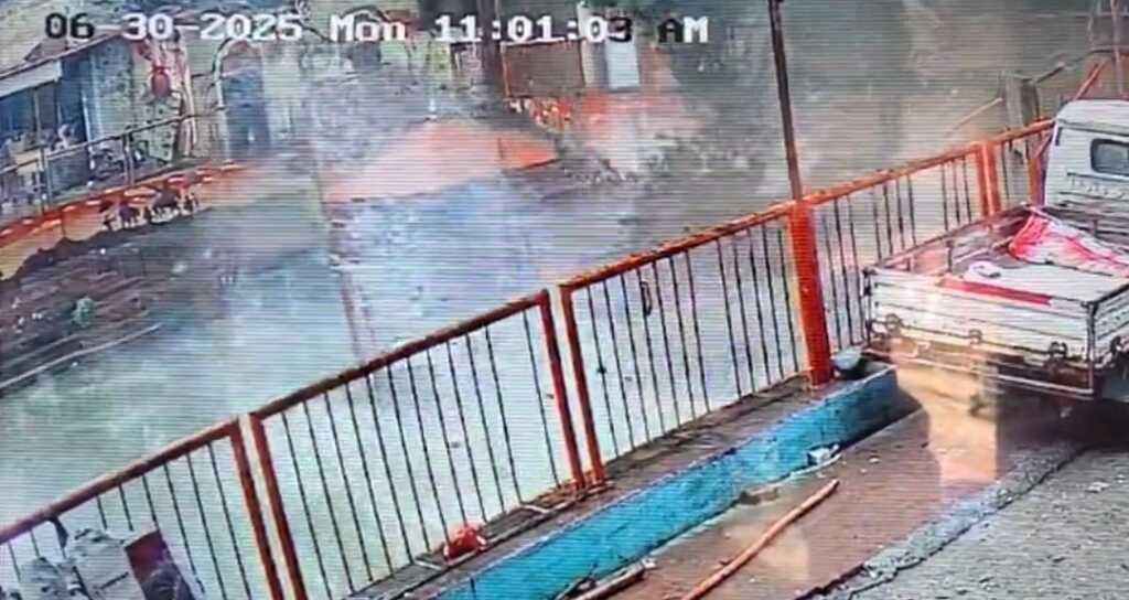 तेज़ बारिश के बाद भीमगोडा मंदिर के ऊपर की पहाड़ी से अचानक गिरा मलबा।