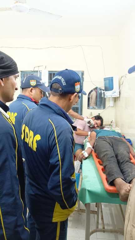 एसडीआरएफ टीम द्वारा घटनास्थल पर पहुंचकर त्वरित कार्यवाही करते हुए लगभग 100 मीटर नीचे गहरी खाई में उतरकर रोप द्वारा उक्त घायल व्यक्ति को खाई से बाहर निकाल कर उचित उपचार हेतु एंबुलेंस के माध्यम से अस्पताल पहुंचाया गया।