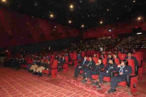 फिल्म के लेखक शांतनु गुप्ता ने अपने संबोधन में फिल्म की पृष्ठभूमि, लेखन प्रक्रिया एवं उद्देश्य पर प्रकाश डालते हुए कहा कि “अजेय” एक व्यक्तित्व की जीवनी मात्र नहीं, बल्कि संकल्प, नेतृत्व और राष्ट्रसेवा की प्रेरक यात्रा का चित्रण है। उन्होंने बताया कि फिल्म का उद्देश्य युवाओं में सकारात्मक सोच और राष्ट्र के प्रति समर्पण की भावना को प्रोत्साहित करना है।