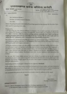 उत्तराखंड कांग्रेस के नेताओं के बीच ख़राब सम्बन्ध की चर्चा हमेशा होती ही रहती है लेकिन सोशल मीडिया में एक चिठ्ठी वायरल हो रही है जिसको कांग्रेस अध्यक्ष करन महारा की चिठ्ठी बताया जा रहा है जिसमे उन्होंने पार्टी आलाकमान से प्रीतम सिंह के खिलाफ कार्यवाई की मांग की है
