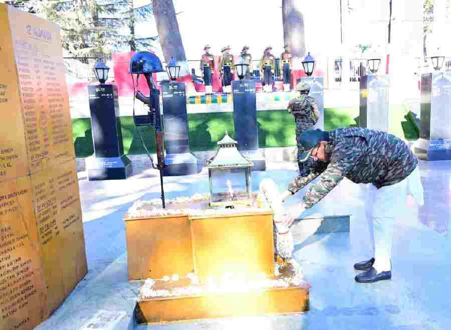 मुख्यमंत्री पुष्कर सिंह धामी ने कुमाऊं रेजीमेंट केंद्र, रानीखेत पहुंचकर अमर बलिदानियों को पुष्प चक्र अर्पित कर श्रद्धांजलि दी। इस अवसर पर मुख्यमंत्री ने सैनिकों एवं अग्निवीरों के साथ संवाद कर उनका उत्साहवर्धन किया। मुख्यमंत्री ने केंद्र में प्रशिक्षण की व्यवस्थाओं, आधुनिक हथियारों एवं वीर नारियों के कल्याण की गतिविधियों का अवलोकन भी किया।