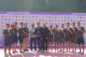 शिवपुरी, टिहरी स्थित सैंड बीच पर खेले गए इस मुकाबले में उत्तराखंड ने शानदार शुरुआत करते हुए पहला सेट 18-21 से जीत लिया। हालांकि, सर्विसेज की टीम ने दूसरे सेट में जबरदस्त वापसी करते हुए 17-11 से जीत दर्ज की, जिससे मैच रोमांचक शूटआउट तक पहुंच गया। अंतिम शूटआउट में दोनों टीमों ने पूरा दमखम लगाया, लेकिन सर्विसेज ने 5-4 से बढ़त बनाकर 2-1 के अंतर से स्वर्ण पदक अपने नाम कर लिया।