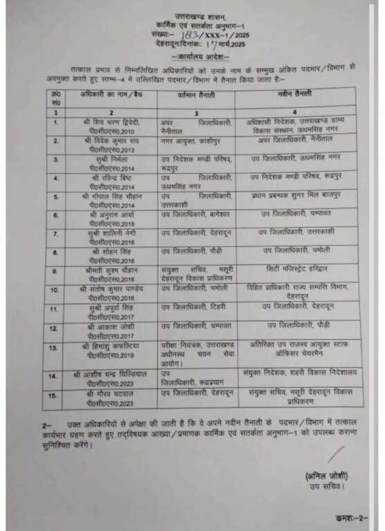 उत्तराखंड में PCS अधिकारियो के बम्पर तबादले देखिए LIST